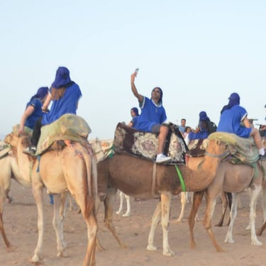 Since 2005, DAR SOUSS LOISIR has been offering authentic camel rides in Agadir. We transport you from your hotel to our ranch, where you'll enjoy a memorable experience in traditional nomadic attire. Our journey crosses the village of Aghroud to the mouth of the Souss Massa River, home to migratory birds. The adventure concludes with mint tea and pastries before your return to the hotel.